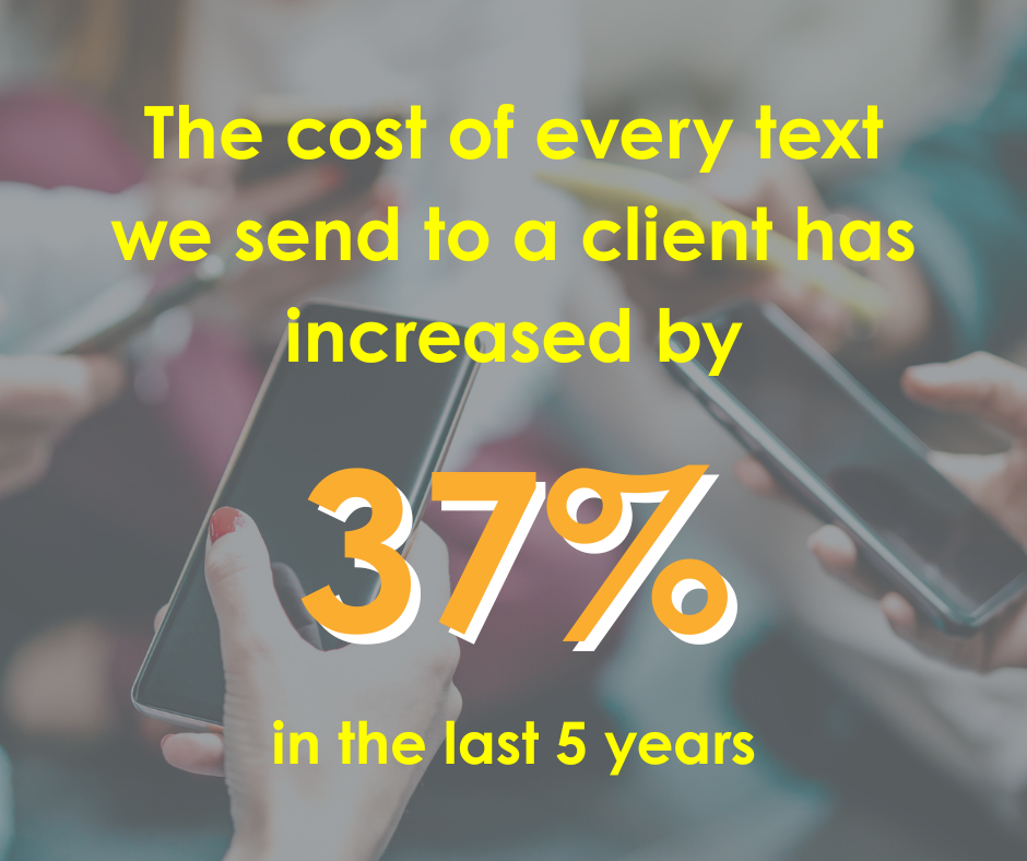 However, the cost of providing this service has risen by over a third in the last few years alone, and cost us £3,000 last year. As more clients choose texting as their preferred way to stay in touch, we know these costs will continue to rise.